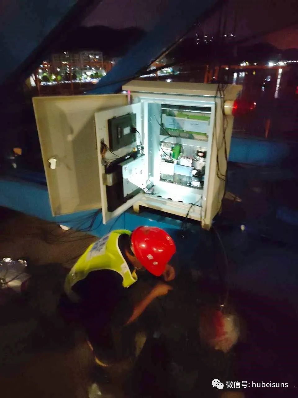 頭頂是白云飛流,腳下是伶仃洋海水卷起白色的浪花,站在260多米高的伶仃洋大橋西塔頂,行駛在伶仃洋中的大船猶如火柴盒般大小。在這里,湖北三思科技的工程師每天要乘坐約8分鐘的施工電梯,到達伶仃洋大橋西主塔的塔頂平臺上班。因為工期緊,深中通道關鍵節(jié)點不停工,工程師們日夜堅守在海上施工現(xiàn)場,完成了橋面吊安全監(jiān)控系統(tǒng)的安裝工作。