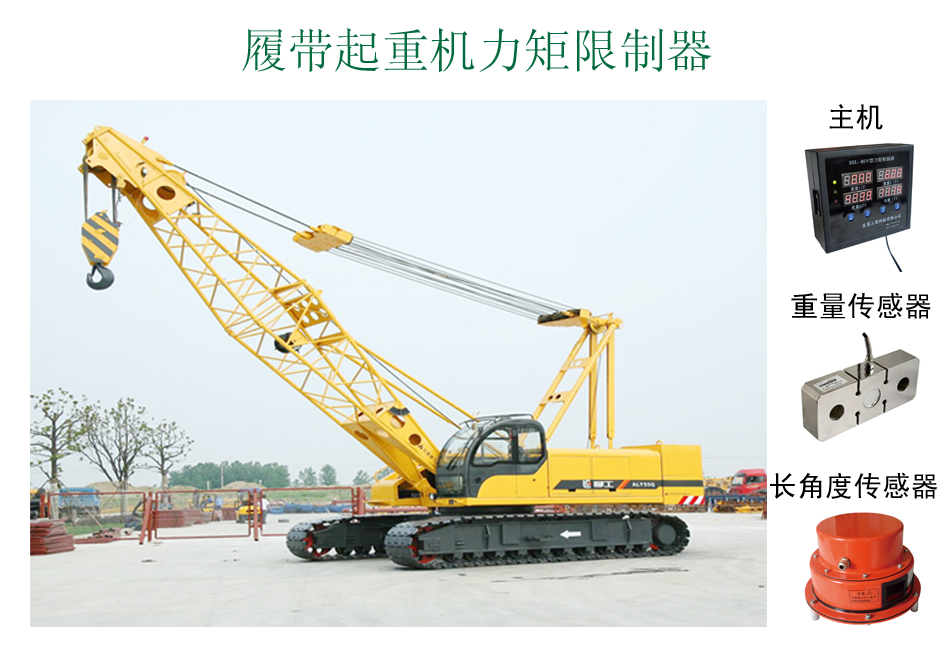 履帶吊力矩限制器主要采用主繩取力或變幅取力。主繩取力傳感器安裝于臂桿頭部,直接測量載荷;變幅取力傳感器安裝于變幅繩上。通過測量變幅拉力計算起吊載荷。變幅繩采樣方式的算法復(fù)雜,但使用維護方便,不影響主繩的更換維修。