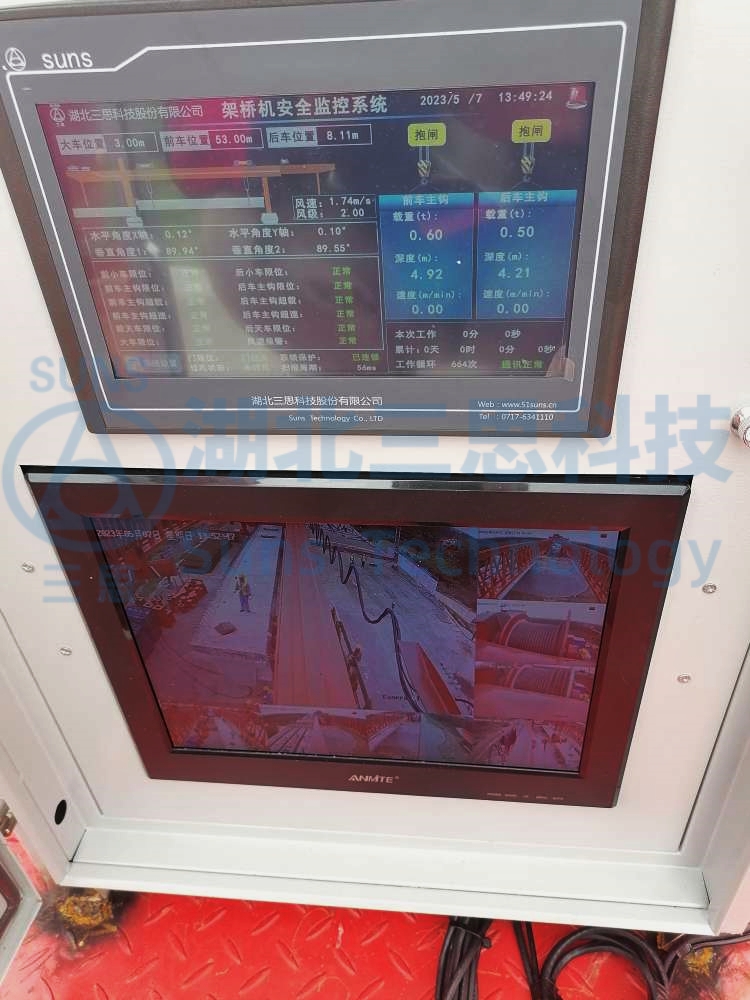 視頻監(jiān)控系統(tǒng)監(jiān)測架橋機的過孔狀態(tài)、架梁狀態(tài)、運梁車同步狀態(tài),視頻顯示器放置于駕駛室中或者主機電箱內(nèi),給駕駛員帶來更加寬廣的操作視野,提高了架橋機操作便捷性。