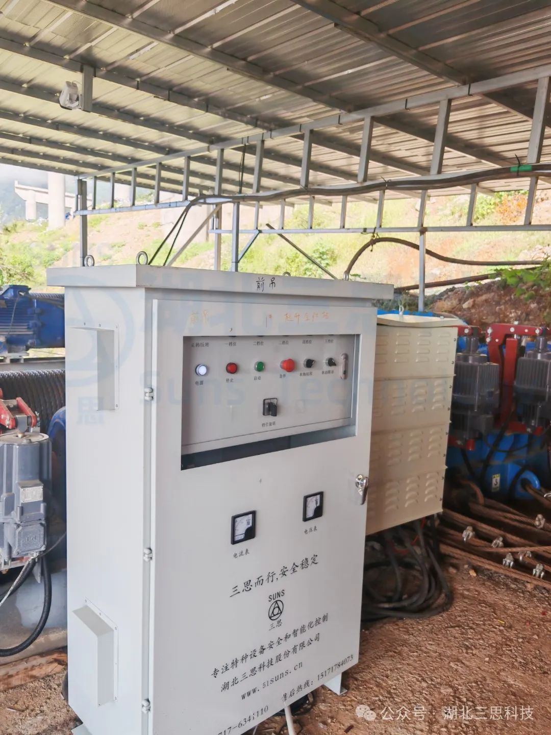 ▲電氣柜安裝完工展示。電氣柜中安裝有PLC,電氣柜上安裝啟動(dòng)停止按鈕,并且安裝電壓表以及電流表方便集中控制。