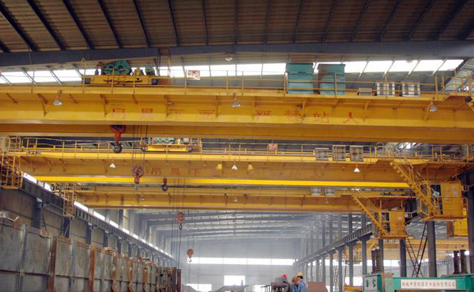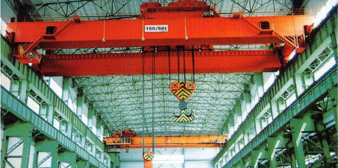 橋式起重機(jī)是橫架于車間、倉庫和料場上空進(jìn)行物料吊運(yùn)的起重設(shè)備。由于它的兩端坐落在高大的水泥柱或者金屬支架上,形狀似橋。橋式起重機(jī)的橋架沿鋪設(shè)在兩側(cè)高架上的軌道縱向運(yùn)行,可以充分利用橋架下面的空間吊運(yùn)物料,不受地面設(shè)備的阻礙。它是使用范圍最廣、數(shù)量最多的一種起重機(jī)械。