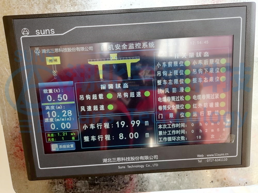 2023年4月4日,由湖北三思科技承接的湖北現(xiàn)場龍門吊安全監(jiān)控管理系統(tǒng)通過工程驗收并正式交付使用。本次方案使用的是湖北三思科技自主研發(fā)的SSL-CB型門機安全監(jiān)控管理系統(tǒng)。